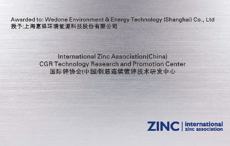 International Zinc Association (China) Steel Reinforcement Continuous Galvanization Technology Research and Development Center Certificate