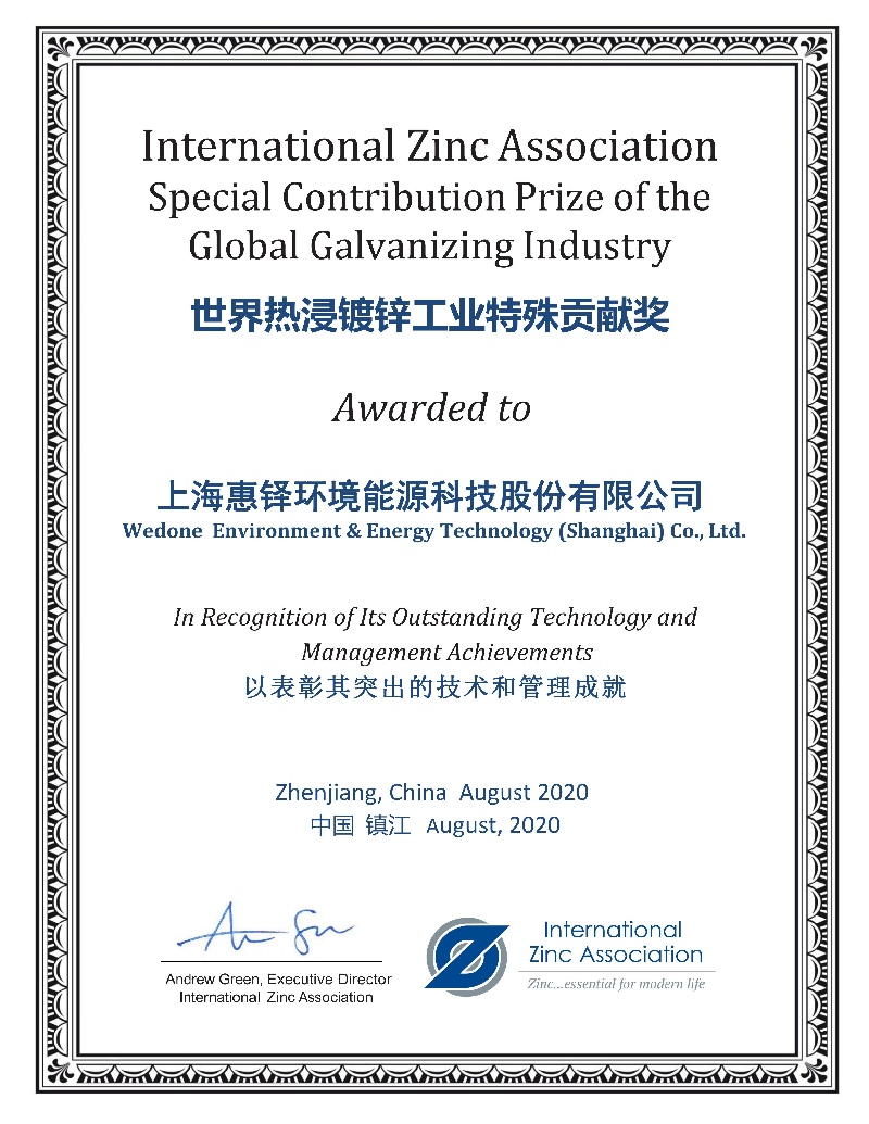 Special Contribution Award for World Hot Dip Galvanizing Industry